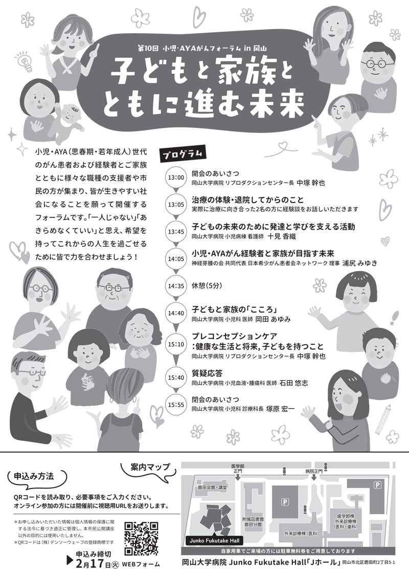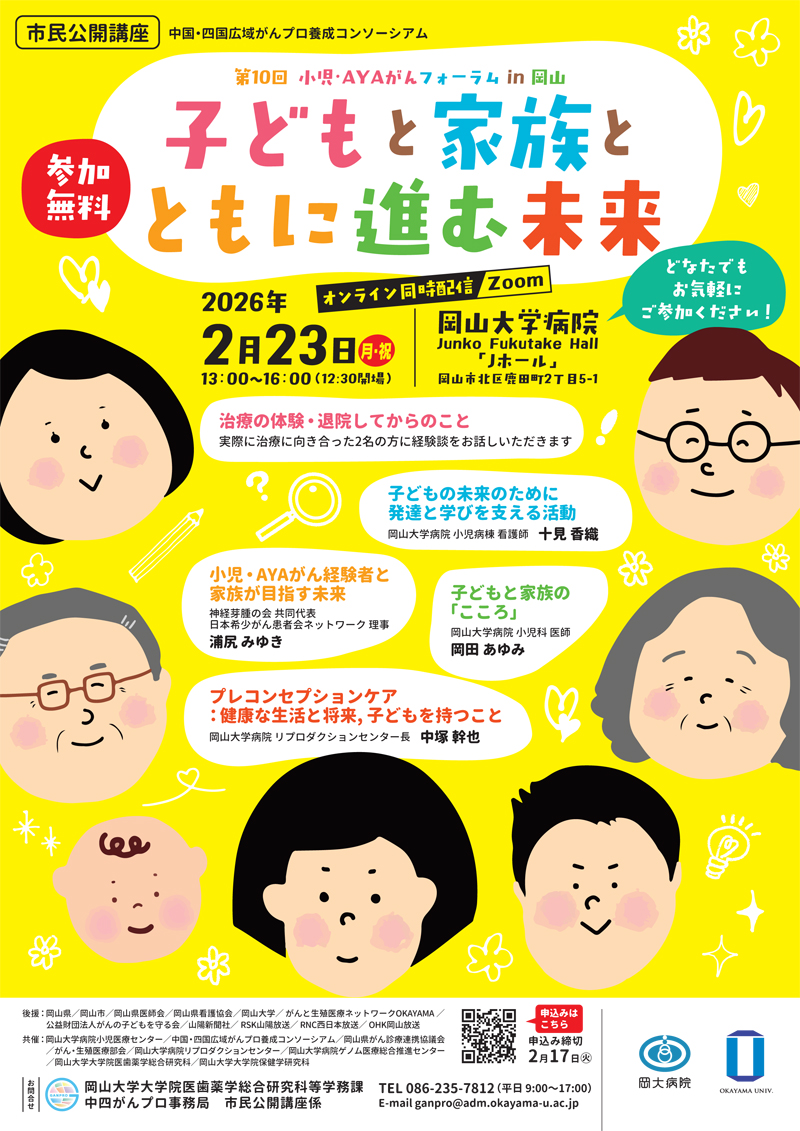 2월 23일(월·축) 중국·시코쿠 광역 암 프로 양성 컨소시엄 시민 공개 강좌 “제10회 소아·AYA암 포럼 in 강원 랜드 슬롯 머신 하는 법야마 “아이와 가족과 함께 진행되는 미래”” 개최의 알림