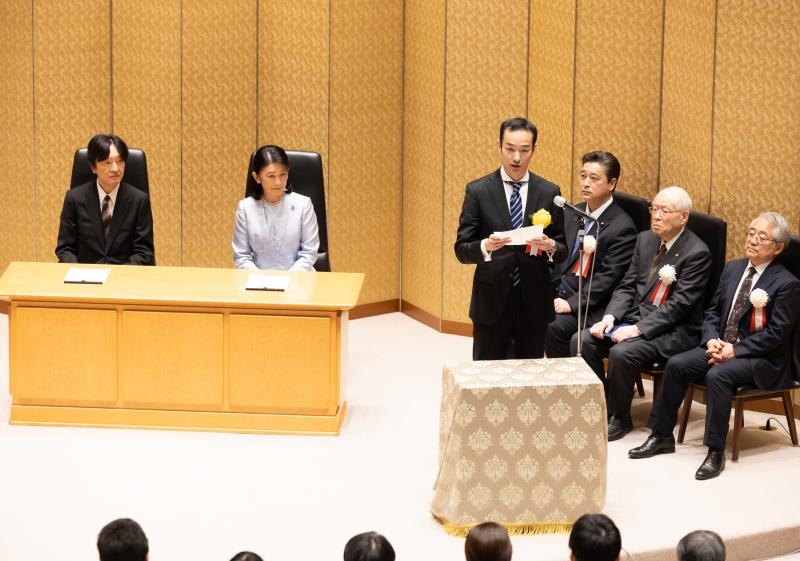 「제22회 일본 학술 진흥회상」 및 「제22회 일본 학사원 학술 장려상」을 수상한 학술연구원 의치약학역(의)의 후지안 개교수가, 2월 3일에 일본 학사원에서, 아키시노미야 황각 동비 양전하 임석의 아래 집행된 시상식에 참가해, 수상자 대표로서 인사했습니다.일본학술진흥회상은, 일본의 학술연구의 수준을 세계의 톱 레벨에서 발전시키기 위해, 창조성이 풍부하고 뛰어난 연구 능력을 가진 젊은 연구자를 초기 단계에서 현창하고, 그 연구 의욕을 높이고, 연구의 발전을 지원해 나가는 것을 목적으로 하는 것입니다.또한, 일본 학사원 학술 장려상은, 젊은 연구자를 현창해 향후의 한층 더 연구를 장려하는 것을 목적으로 헤세이 16년도에 창설되었습니다. 본상은, 뛰어난 연구 성과를 올린 젊은 연구자 중, 향후의 활약이 특히 기대되는 사람에 대해, 일본 학술 진흥회상 수상자 중에서 매년 6명 이내에 수여됩니다.